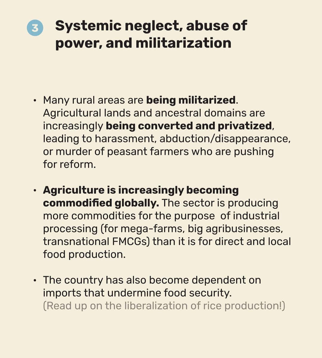 Agroecology is more than a way to grow food. Yes, it is an applied science that uses a holistic approach to agro-ecosystem and food systems, with its set of regenerative and ecological principles and practices. But more than this, agroecology is a socio-political movement that connects these principles and practices to the broader goal of systemic change. It is a tool for organizing to fight the growing hold of corporations on our food system.Agroecology works to shift the power from global corporate agribusinesses and industrial food chain to the small food producers. The industrial food chain uses 75% of the world’s agricultural resources while feeding only 30% of the world’s population, while peasant farmers are actually responsible for feeding 70% of the world while using only 25% of resources. And yet, the small farmers, continue to remain powerless and marginalized. The corporate food system is also implicated in numerous existential threats facing the world today such as the climate emergency, the double crises of malnutrition and obesity, and growing inequities.As a holistic approach to farming, agroecology, according to Pesticide Action Network - Asia Pacific, recognizes people and communities as part of the agroecosystem, seeking “to establish system equilibrium by supporting reciprocal relationships among the agroecosystem’s components, the natural world and the society in which we live.” According to PANAP, agroecology has five guiding principles:
